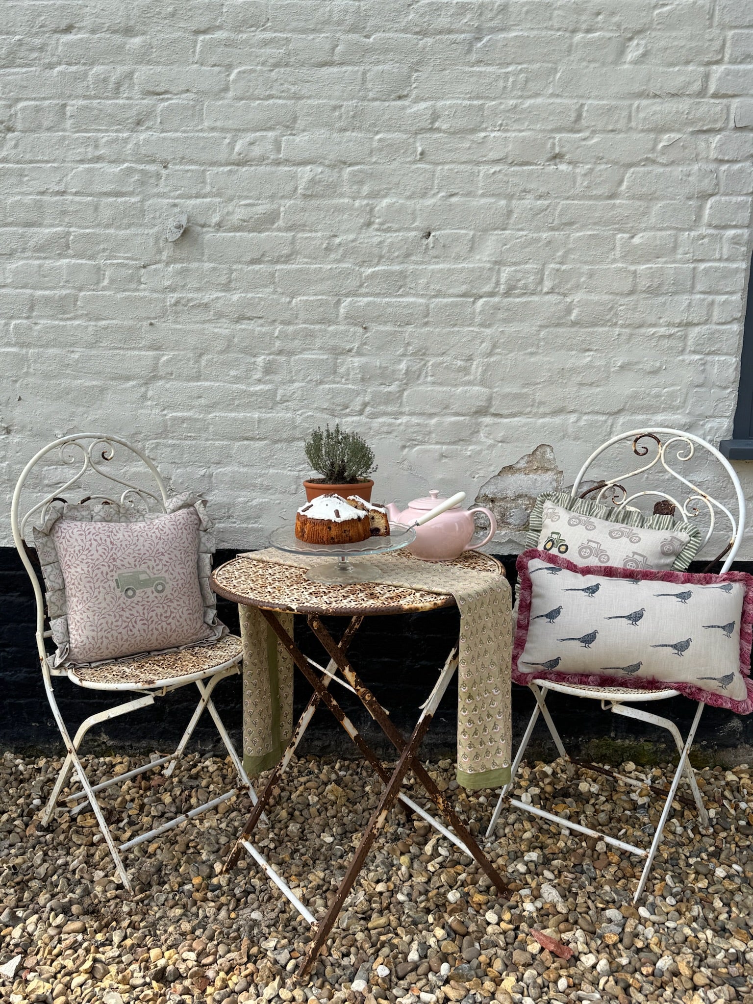 From plain fabric, to finished product, quite the transformation happens in the White Suffolk Cottage.